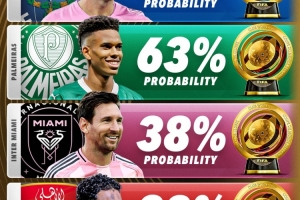 體育資訊6月12日訊 Score90根據(jù)賠率列出了世俱杯各隊(duì)小組出線的概率,曼城91%、皇馬90%、邁阿密國際38%。