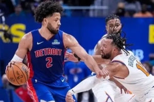 活塞暴打尼克斯31分:坎寧安兩節半29分9助攻提前解決比賽,全場29分13助攻2封蓋——布倫森21投25分0助攻。