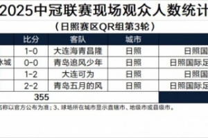 2025中冠聯賽現場觀眾人數統計(日照賽區QR組第3輪) ???