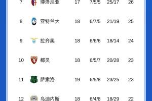 體育資訊01月07日訊 意甲第19輪,尤文客場3-0薩索洛,羅馬客場2-0萊切,最新積分榜如下: