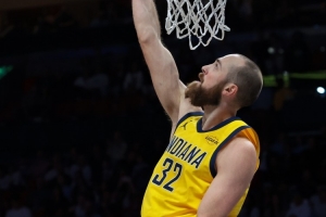 本場比賽,步行者中鋒赫夫發揮不錯,進攻端里突外投很高效,但最后時刻不在場上。