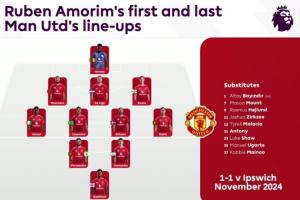 體育資訊01月07日訊 英超官方社媒曬圖,對(duì)比了阿莫林執(zhí)教曼聯(lián)首戰(zhàn)和最后一戰(zhàn)的首發(fā),并且發(fā)問:“你注意到什么了?”