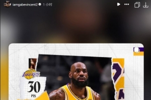 賽后,因傷缺席的文森特第一時間曬出了詹姆斯的數據海報,祝賀老詹打出一場精彩的比賽。