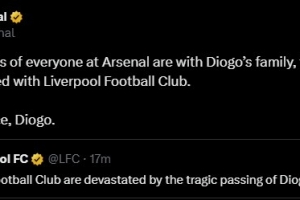 阿森納官推寫道:“阿森納俱樂部全體成員與若塔的家人、朋友以及利物浦足球俱樂部的所有人同在,愿若塔安息。”