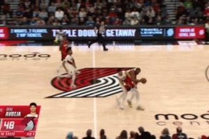 GIF-亞當斯前場板拍出來、杜蘭特和卡馬拉撞一起了