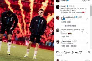 此役維爾茨為利物浦踢滿全場,賽后他在社交媒體上曬出比賽照片,配文:“我們想要更多,但仍然為能成為這支球隊的一份子感到自豪!感謝球迷在客場的支持。”