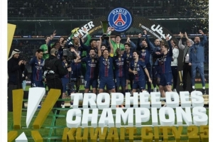 體育資訊1月9日訊 法國超級杯比賽,巴黎圣日耳曼2-2戰平馬賽,最終在點球大戰中取勝,捧起冠軍獎杯。