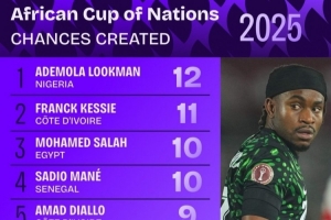 本屆非洲杯創造機會榜: