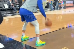 庫里今天穿著巴特勒簽名鞋JB3 Samba Dancer參加賽前訓練