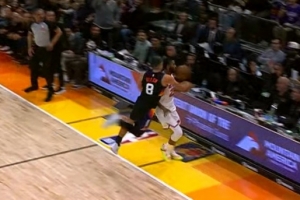 GIF-阿倫將球捅到布里奇斯身上出界,尼克斯挑戰失敗,太陽球權