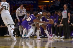 GIF-斯瑪特掏球小波特,裁判吹雄鹿球權;湖人挑戰又成功了
