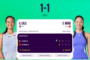 體育資訊01月10日訊 WTA250奧克蘭站女單半決賽,王欣瑜vs埃亞拉。