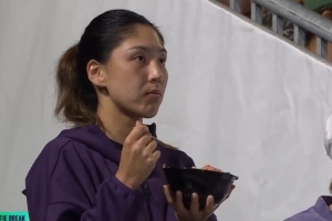 在率先晉級后,王欣瑜在場邊一邊吃著東西一邊觀看第二場半決賽,她決賽的對手將是斯維托麗娜和約維奇之間的勝者。