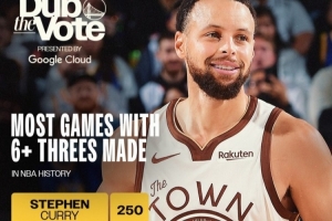 勇士官方曬出庫里三分紀(jì)錄,據(jù)統(tǒng)計,庫里生涯至今已經(jīng)有250場比賽至少投進(jìn)6記三分,NBA歷史高居第一!