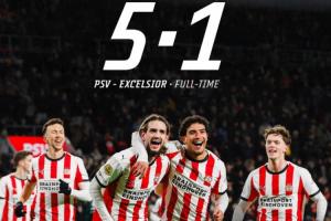 體育資訊01月11日訊 荷甲第18輪,埃因霍溫5-1大勝SBV精英,在荷甲聯賽豪取12連勝。