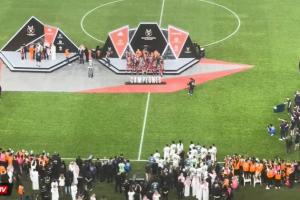 現(xiàn)場完整視頻顯示,巴薩球員領(lǐng)取獎牌和捧杯時,皇馬全隊均在場上。阿勞霍舉起獎杯時,皇馬全隊慢慢開始離場。