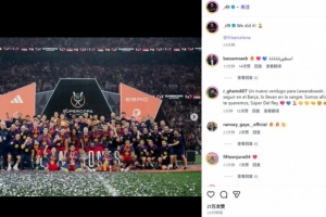 他也在賽后通過社媒曬出全隊(duì)捧杯合照,并配文:“我們做到了!??@巴塞羅那俱樂部”。