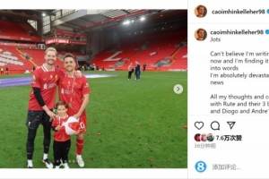 體育資訊7月4日訊 利物浦前鋒若塔因車禍離世,前隊友凱萊赫社媒發文悼念。