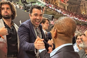 巴薩名宿克魯伊維特現場觀看了這場比賽,見證老東家奪冠,并與巴薩總監德科見面,他在社交媒體上曬出相關照片。