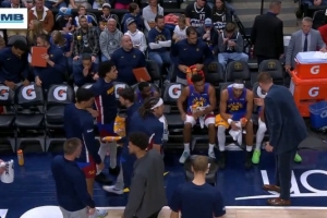 GIF-約基奇西裝革履聲情并茂指點掘金替補席 皮克特頻頻點頭