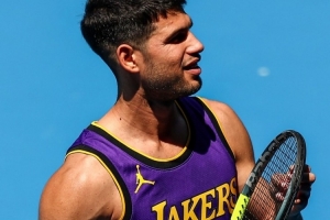 體育資訊1月13日訊 據昨日報道,西班牙網球名將、現男子單打排名第一的卡洛斯-阿爾卡拉斯在澳大利亞網球公開賽的訓練中上身了湖人球星詹姆斯的23號球衣。