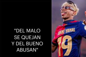 其中有一張亞馬爾反戴帽子的照片,此外還有一張照片只是一句話:他們抱怨壞的,辱罵好的。