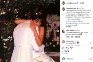體育資訊7月4日訊 貝克漢姆更新社媒動(dòng)態(tài),慶祝與維多利亞結(jié)婚26周年紀(jì)念日。