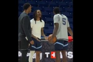 今日灰熊踩場訓練,莫蘭特和隊友文斯·威廉姆斯疑似爭吵,一開始兩人在討論某個話題,指著球場,后續(xù)上升到了爭吵,有助教前來拉開也無濟于事,兩人互相攤手,莫蘭特言辭激烈,最終兩人不歡而散。