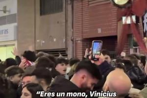 部分阿爾瓦塞特球迷在球場附近高唱辱罵維尼修斯的歌:“維尼修斯,你是猴子?!?/p>