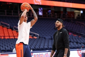 體育資訊1月15日訊 安東尼兒子基揚表示,他的父親幾乎每場比賽當天都會飛到雪城,并陪他進行賽前訓練。