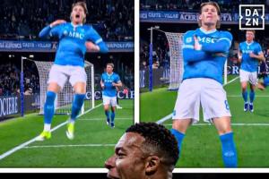 本場比賽第10分鐘麥克托米奈進球,隨后做出的慶祝動作酷似姆巴佩。但是隨后VAR介入,判罰此粒進球越位在先,進球無效。