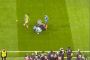體育資訊01月17日訊 皇馬vs萊萬特賽前,姆巴佩熱身搶圈訓練時遭赫伊森誤傷,痛苦捂住腳踝,長時間接受隊醫治療后,一瘸一拐起身。
