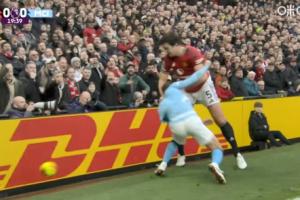 體育資訊01月17日訊 曼市德比第20分鐘,馬奎爾護球出底線,B席逼搶下兩人雙雙倒地。
