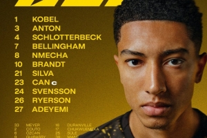 1-科貝爾、3-安東、4-施洛特貝克、7-小貝林厄姆、8-恩梅查、10-布蘭特、21-法比奧·席爾瓦、23-埃姆雷·詹、24-斯文松、26-萊爾森、27-阿德耶米