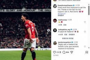 本場比賽利桑德羅發揮出色,限制了哈蘭德的表現。利桑德羅賽后在社媒曬出本場慶祝照,配文寫道:“每一個人都表現出色,這讓我們收獲勝利。感謝球迷的支持,紅魔加油!”