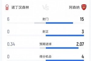 體育資訊1月18日訊 本輪英超,阿森納0-0客平諾丁漢森林。雙方全場(chǎng)重點(diǎn)數(shù)據(jù)對(duì)比如下↓(主隊(duì)森林在前)