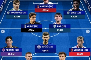 德轉列意甲U21最貴陣:總身價2.78億歐元