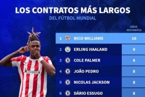 體育資訊7月5日訊 尼科-威廉姆斯轉(zhuǎn)會(huì)巴薩一事在昨日迎來大反轉(zhuǎn),他最終加薪續(xù)下10年長(zhǎng)約,《轉(zhuǎn)會(huì)市場(chǎng)》統(tǒng)計(jì)顯示這也是世界第一長(zhǎng)合同。