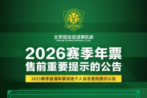尊敬的球迷朋友,大家好!俱樂部將于春節假期后啟動2026賽季年票發售工作。為了方便2025賽季已購年票球迷進行原座位續購或優先選座,請仔細閱讀圖片中的重要提示內容