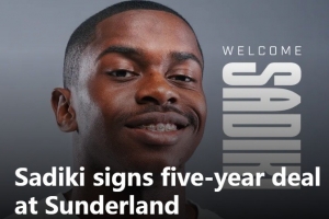 體育資訊7月5日訊 英超升班馬桑德蘭官方宣布,簽下20歲的民主剛果中場諾亞-薩迪基,雙方簽約五年。