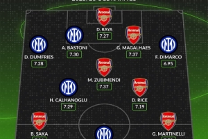 體育資訊1月20日訊 阿森納將在本輪歐國客戰(zhàn)國米,whoscored統(tǒng)計(jì)了雙方的本賽季歐冠評(píng)分合體最佳陣,槍手6人、國米5將。