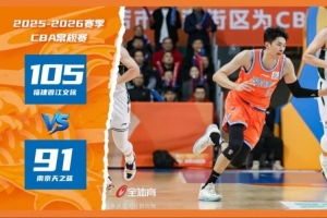 2025-2026賽季CBA常規賽第17輪,福建晉江文旅男籃回歸主場,首戰南京天之藍男籃。憑借首節建立的巨大優勢,核心球員的穩定輸出與全隊堅韌的防守,主隊福建晉江文旅男籃最終以105-91大勝對手。四節比分分別是:31-12,18-28,31-27,25-24(福建晉江文旅男籃在前)。