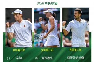 體育資訊7月5日訊 溫網今天將進入到第六個比賽日的爭奪,辛納、斯瓦泰克、德約科維奇亮相中央球場。