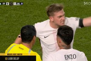 在上半場補時階段,德拉普染黃,之后德拉普不滿抱怨說道:F**k off。