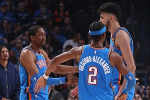 據統計,他們3個是NBA三分時代以來在總決賽同時砍下20+第二年輕的三人組(SGA26歲、杰倫威23歲、切特22歲),最年輕的是2012年的杜蘭特、威少、哈登(KD23歲、威少22歲、哈登22歲)。