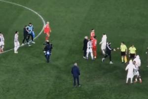 帕夫利季斯罰點時滑倒,踢飛點球,賽后難過不已,穆帥擁抱送上安慰。