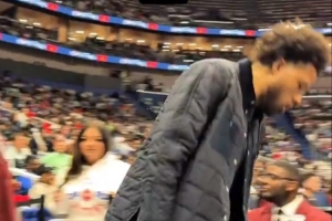 CC在球迷的MVP歡呼聲中帥氣入場,被絆了一下,對拍攝的球迷說:這段你最好給剪掉??