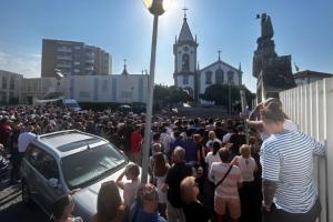 記者表示,當(dāng)?shù)厝撕颓蛎砸黄鹪诮烫猛鈦辛ⅲS多人穿著球衣,外面掛著葡萄牙國旗。教堂的另一邊時不時傳來莊嚴(yán)的掌聲,記者推測大概是親密親屬聚集的地方。