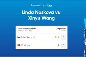 體育資訊01月24日訊 澳網女單第3輪,王欣瑜對陣諾斯科娃。兩人第一盤戰至2-2時,因為高溫天氣比賽暫停。