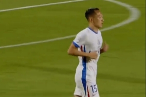 上半場補時階段,武曦接隊友傳中,禁區(qū)內(nèi)上演神來之筆,一記靈巧的腳后跟磕球破門。